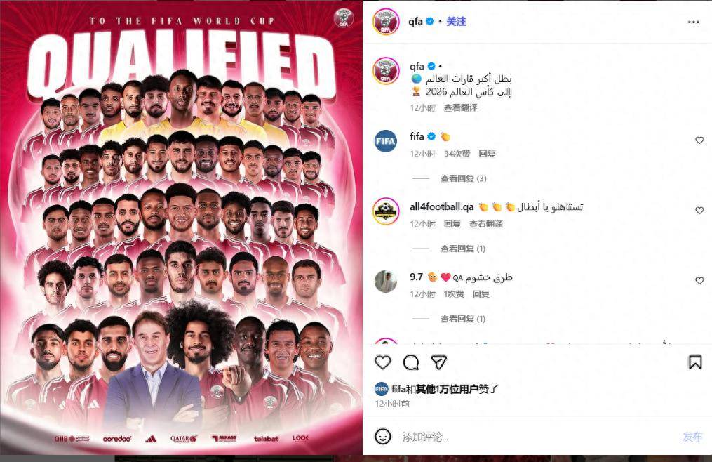 非常终,卡塔尔队,2,比,1,战胜阿联酋队,1,胜,1,平积,4,分位列小组第一,继,2022,年以东道主身份参赛后,连续两届拿到世界杯入场券。