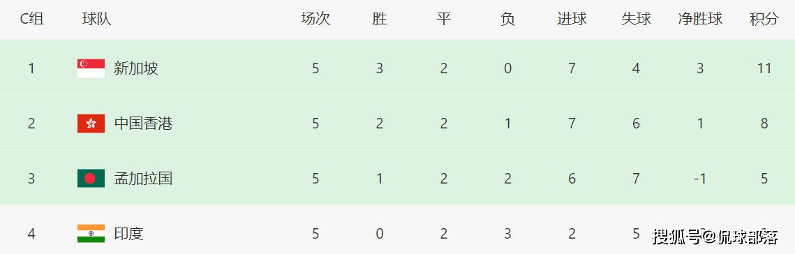 同组的中国香港、孟加拉国,也是提前无缘亚洲杯正赛,尤其中国香港,第五轮主场1-2被新加坡逆转之后,提前失去了晋级资格,新加坡则是时隔41年再度晋级亚洲杯正赛,也是新加坡队史历史上第一次通过预选赛挺进亚洲杯正赛。返回搜狐,查看更多