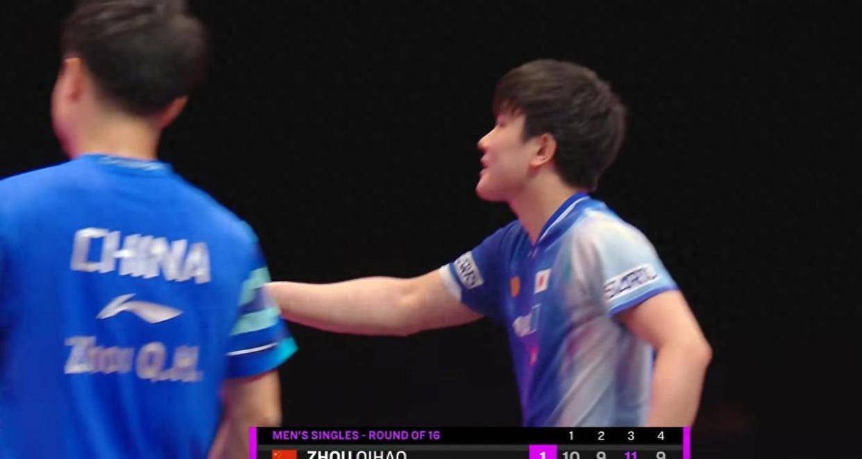 这一局,几乎定下了全场比赛的基调,中国选手在关键时刻手软,而日本一哥则越到关键分越敢搏杀。 第二局几乎是第一局的翻版,周启豪曾以7比4领先,却又在局末被张本智和以11比9反超。