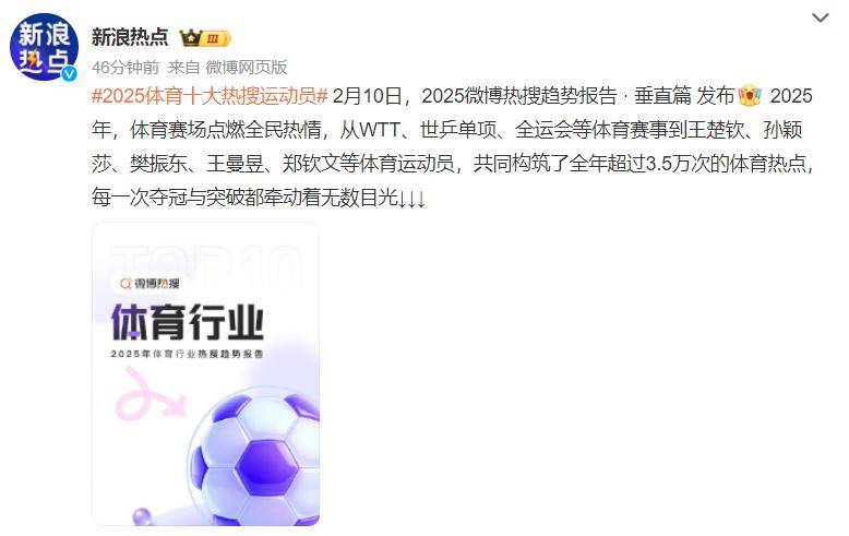 爱体育,爱体育官网,爱体育APP,爱体育APP下载,爱体育下载,爱体育网页版,爱体育电竞,爱体育百家乐,爱体育百家乐,爱体育真人,CBA,CBA赛程表,CBA直播,NBA,NBA直播,UFC格斗辞旧迎新,体育赛事亦是精彩纷呈。近日发布的《2025微博热搜趋势报告·垂直篇》中,体育领域的数据格外引人注目,为我们描绘了一幅生机勃勃的“体育过大年”景象。这份报告以翔实的数据,揭示了2025年体育世界的脉动。