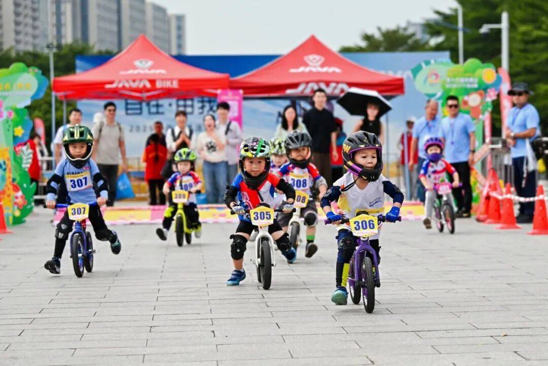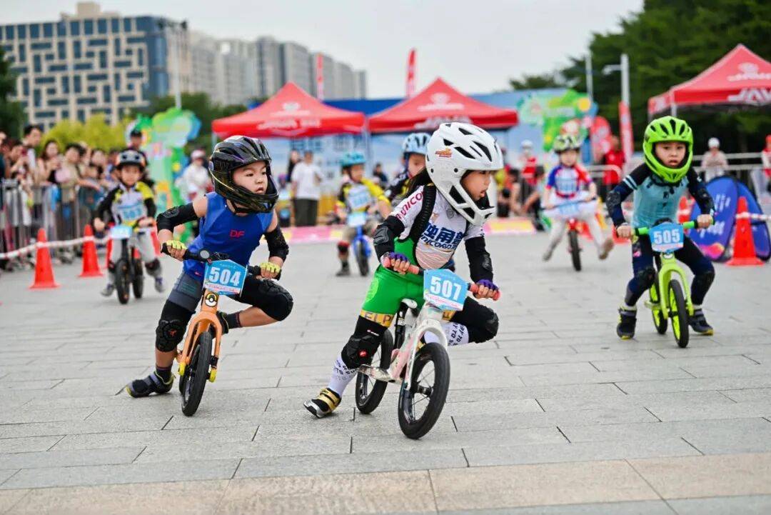 首日举办的儿童滑步车备受关注,可谓“一人参赛全家旅游”,在亲友团的助阵下,孩子们争先恐后,好不热闹,数万游客驻足观赛。经过激烈的角逐,何以恒、黄羽薪、刘梓伊分别斩获3岁组、4岁组、开放组(5-6岁)组冠军。