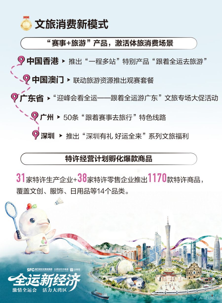 粤港澳三地联办赛事,顺势带动了跨区域消费。“一程多站”全运主题游,串联起赛事场馆、城市地标、特色美食与文化体验点。
