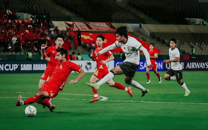蒯纪闻(中间白衣者)在对阵越南的半决赛中。图源:ECHOFOOTBALL